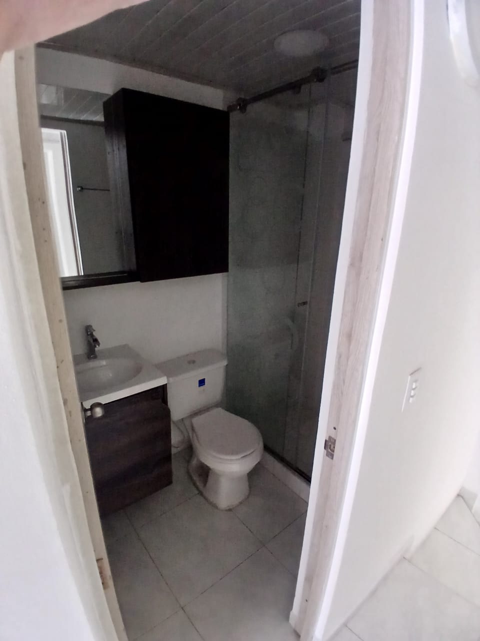 1 Baño con división en vidrio y ducha eléctrica